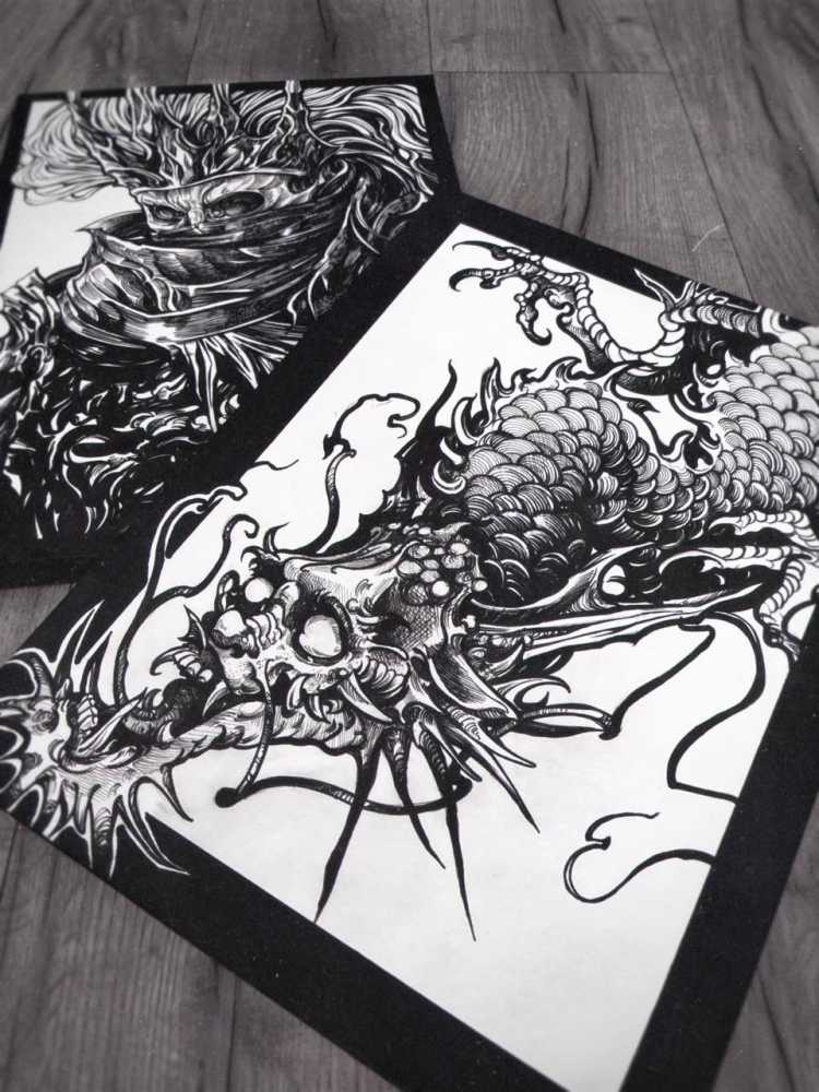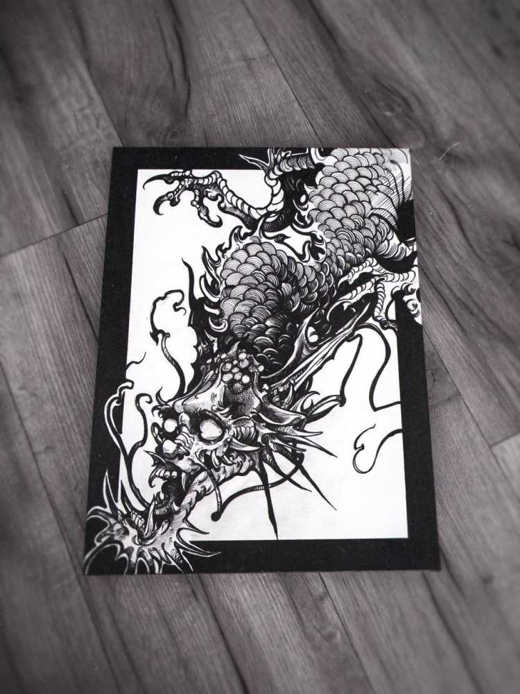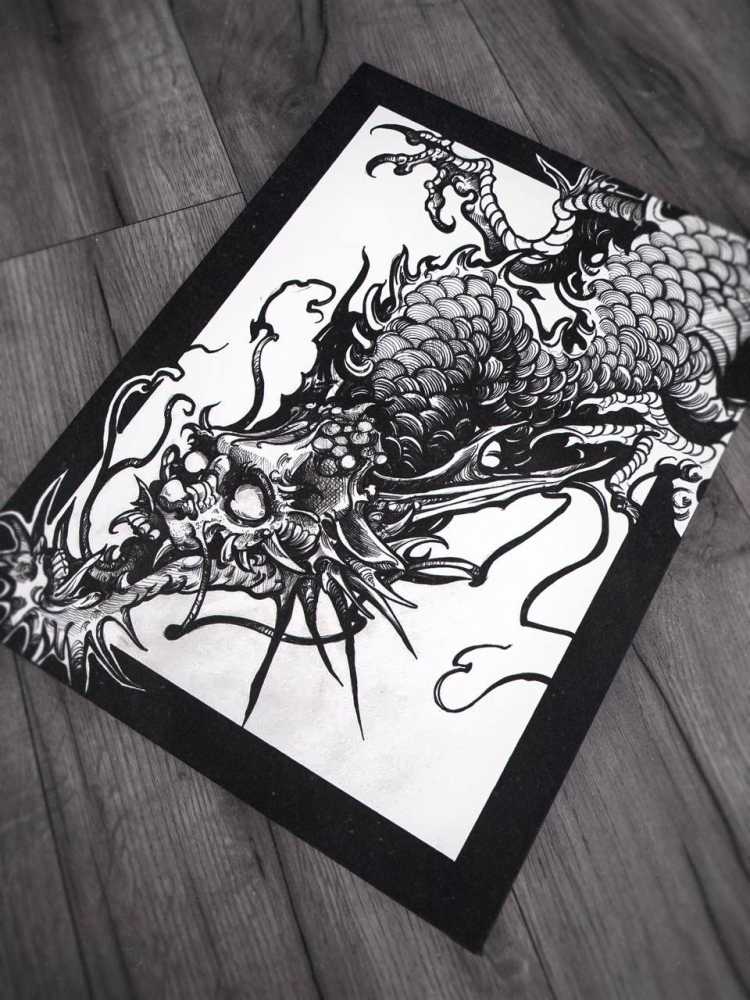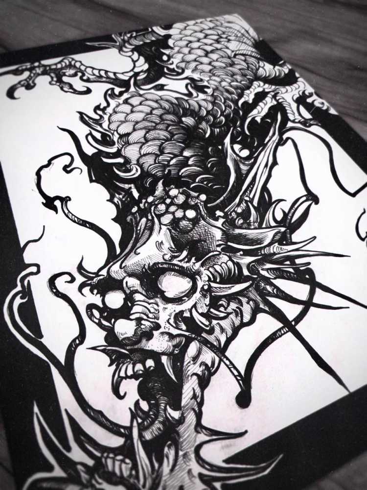 Продам планшет с изображением китайского дракона, стилизованного под мрачную графику.